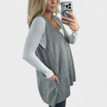 Élégant et chaud, ce gilet est un véritable coup de cœur pour nos clientes ! Fluide et duveteux, il est idéal à superposer grâce à sa coupe longue et trapèze qui flatte la silhouette. Sa matière légère, semblable à un pull, offre une chaleur agréable sans volume superflu, tandis que son coloris chiné et ses finitions côtelées lui confèrent une touche d'élégance.