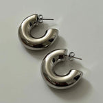 Our chunky hoops are made of water-resistant 14K gold-plated stainless steel. Make a bold statement with the 14K gold-plated Chunky Hoops earrings. These stunning earrings feature a substantial and modern design that adds an edge to any outfit. Perfect for elevating your look with a contemporary touch, they combine a substantial style with timeless elegance.