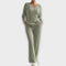 Featuring a modern striped design, the set includes a long-sleeve top with a V-neckline and wide-leg pants – the ideal combination of comfort and elegance for relaxation or everyday outings.