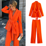 Discover the ultimate style and comfort with our Lena set for women. This two-piece set consists of a long belted jacket that highlights the waist and fitted pants – perfect for both formal and casual occasions. Made with high-quality materials that ensure breathability and comfort, whether you're at the office or out to dinner.